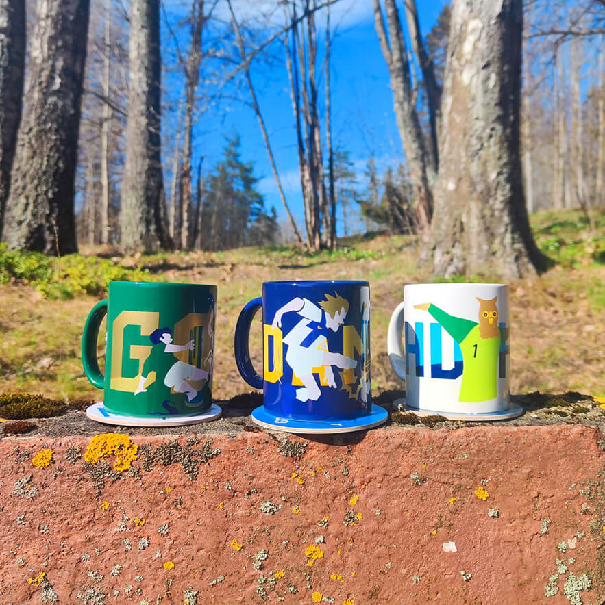 Aamukahvi parvekkeella, huurteinen terassilla, tai vaikkapa puistopiknik kaupungin sykkeessä - Minifiguuri -lasinalusten ja mukien avulla hyvä tunnelma on taattu!