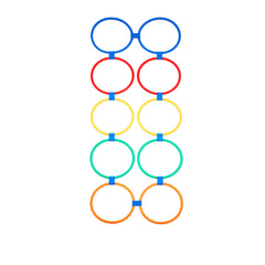 Setti tarjoaa ketterämmän ja muunneltavamman vaihtoehdon perinteiselle agilitytikkaalle. Kymmenen kevyestä ja pehmeästä muovista valmistettua rengasta yhdistetään kestävillä liittimillä, jolloin voit rakentaa harjoitusradan tarpeidesi mukaan.