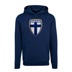 Ylellisen tuntuisen hupparin rinnassa Vaakuna kolmiulotteisena, sametinomaisena kangasmerkkinä.