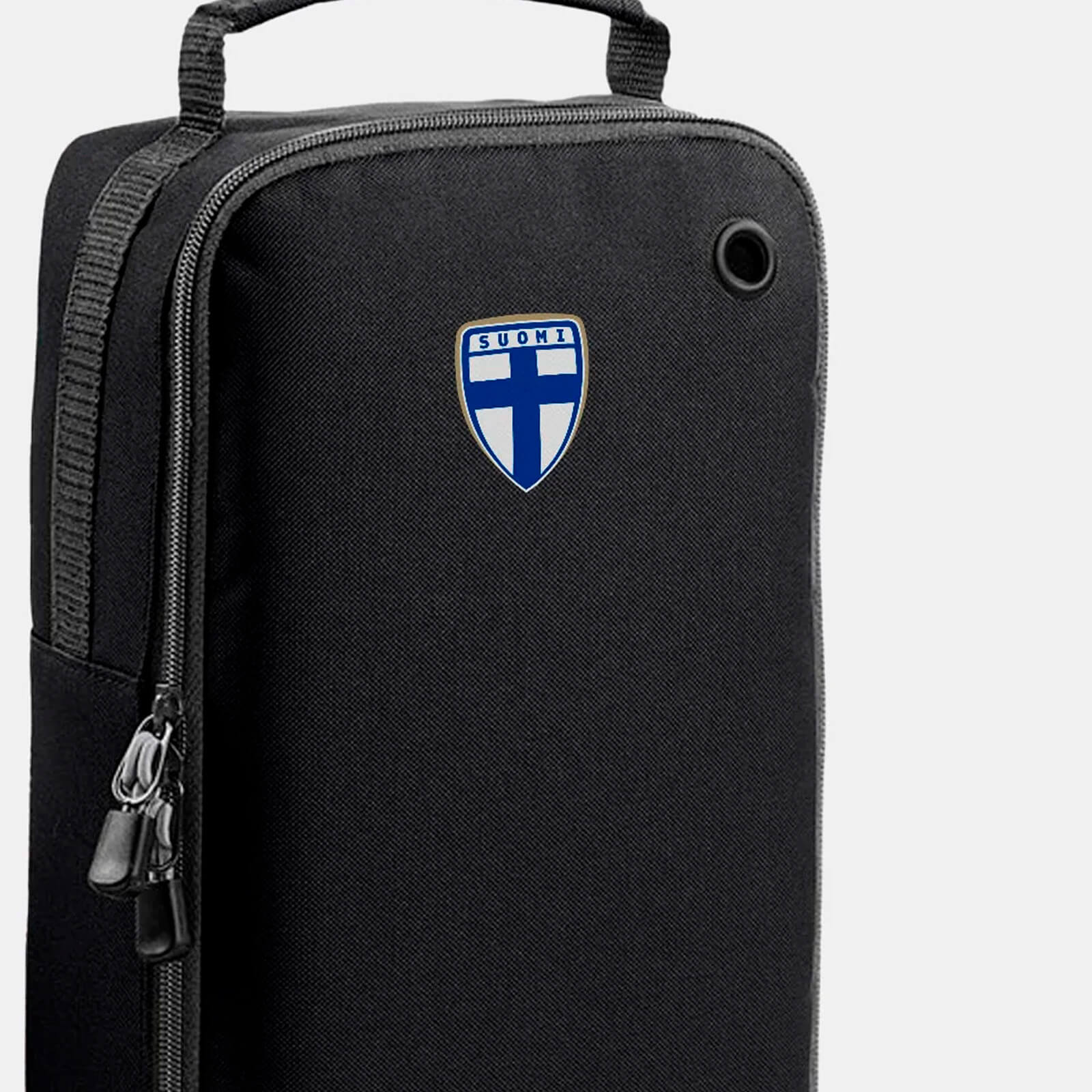 a shoe bag with a Finland crest logo, where you can customize your own name and number on it. These shoes are yours and there is no doubt about that when your name and number are written on the shoe bag! A fun and practical product for all players. With this shoe bag, you free up space in your backpack and make sure that unwanted odors do not take over your backpack.